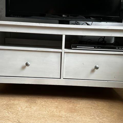 IKEA TV/mediebänk, vit med två lådor i gott skick.