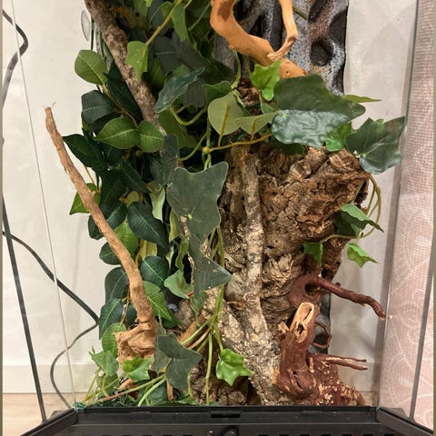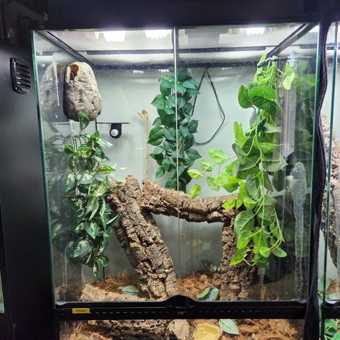 Pacman groda med terrarium 43x43x43cm och tillbehör så som ljusramp lite mat och vitaminer.