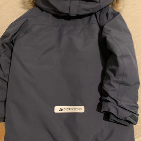 Säljer en svart Didriksson parka, storlek 160. Huvan är avtagbar, likaså fuskpälsen. 100% vattentät med Storm system. Varmt fodrad. Vitt skönt foder i ryggen. Möjligt att dra åt i midjan.