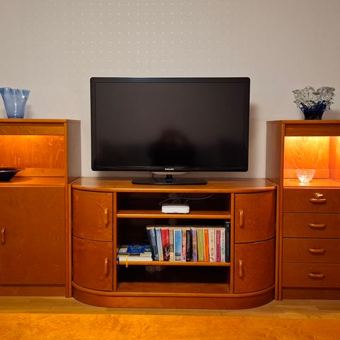 Dansk design möbelset i ekträ med förvaringsskåp och lådor