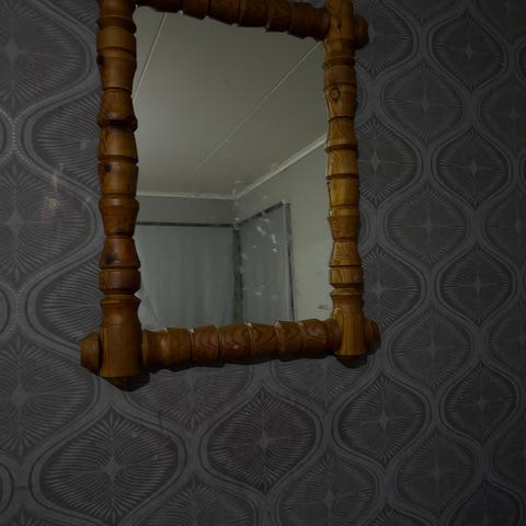 Antik spegel med guld ornament. 90cm lång