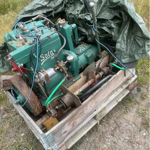 I normalt skick. Fungerar. Växellådan fungerar. Rost finns på vissa ställen.
