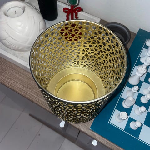 Dekorativ lykta tillverkad i turkos metall med utskurna mönster och handtag för bärbarhet. Passar för användning med ljus och som inredningsdetalj.