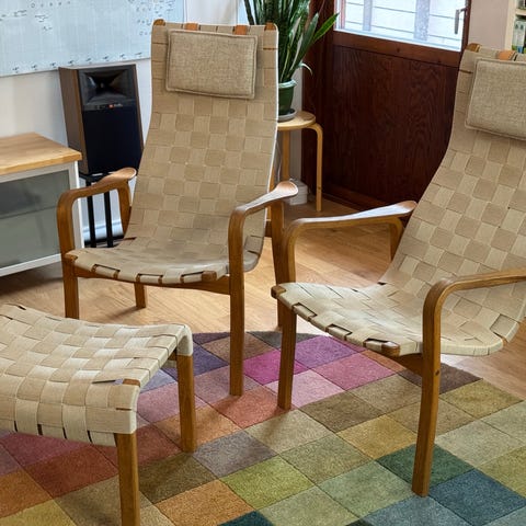 Ryggstödet kan lutas i två lägen – ett mer upprätt och ett lite mer tillbakalutat. Riktigt skön att sitta i!