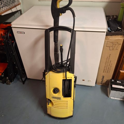 Kärcher stark högtryckstvätt använd, funkar , men autostopp funkar inte , ingen problem så länge du tvättar men du behöver stänga av manuellt när du inte använder.