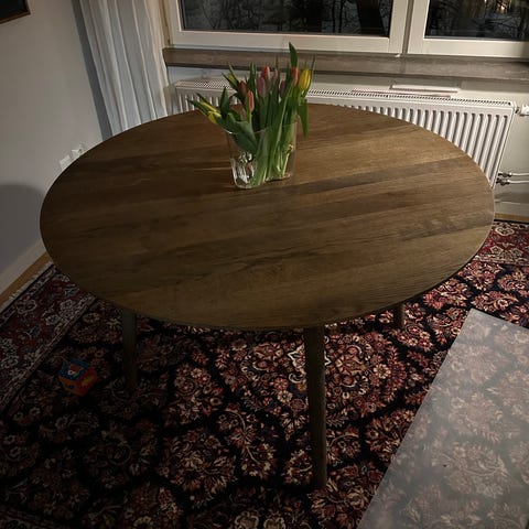 In Between SK3 är ett runt matbord med tre ben, 90 cm i diameter. Designat av den finska formgivaren Sami Kallio för det danska varumärket &Tradition.
