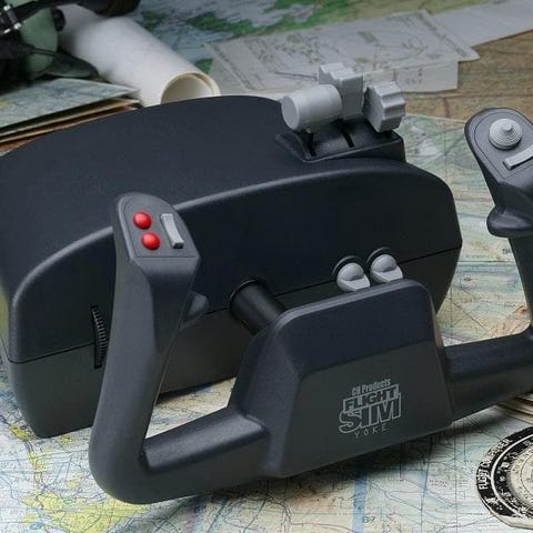Har tre axlar (en minijoystick utöver själva gasreglaget) och 24 knappar. Är programmerbar med CH Products programvara.
