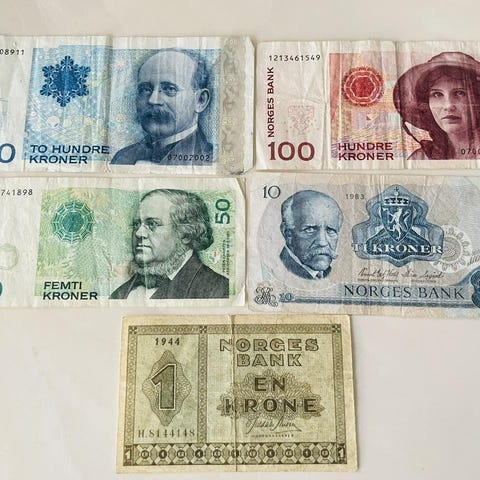 Samling av Polska sedlar i olika valörer inklusive 5, 10, 100, 500 och 1000 zloty. Sedlarna visar olika historiska motiv och är i varierande skick.