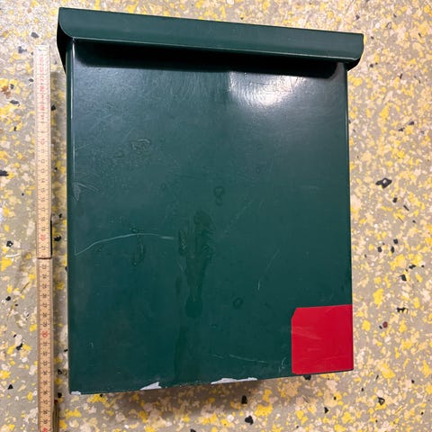 Amerikansk brevlåda, svart m röd flagga. Helt oanvänd.