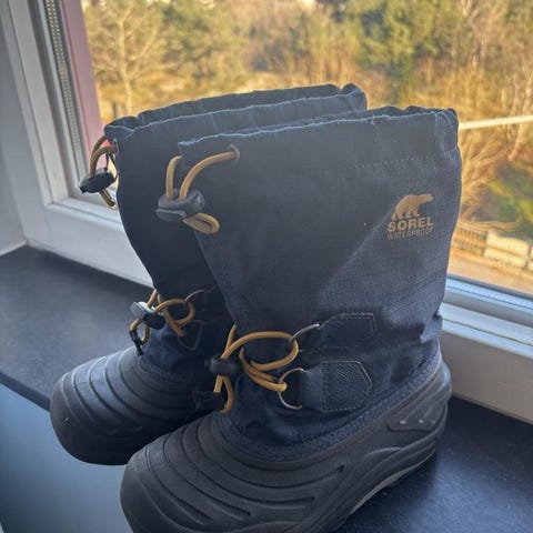 Sorel barnskor i storlek 33. Skorna är rosa med svart sula och har en varm, uttagbar insida. Begagnat men fullt funktionellt skick!