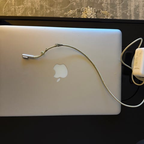 Apple MacBook Pro laptop med medföljande laddare och originalförpackning. Enheten har en metallfinish och ett inbyggt tangentbord. Produkten levereras med bruksanvisningar och är avsedd för allmänt datorbruk. Startar och fungerar bra med laddning. Saknas operativsystem det får man installera själv.