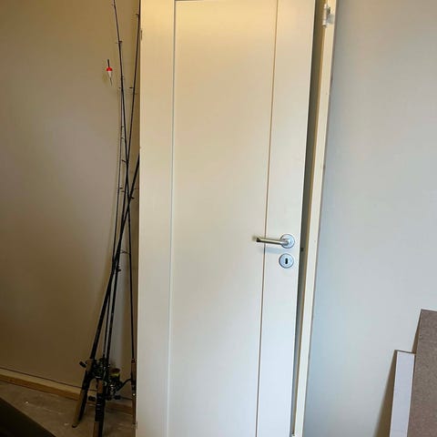 Dörren är avsedd för inomhusbruk och har en enkel design utan synliga beslag eller handtag.