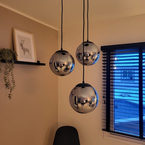 Modern och stilren glaslampa med fyra justerbara lampor.