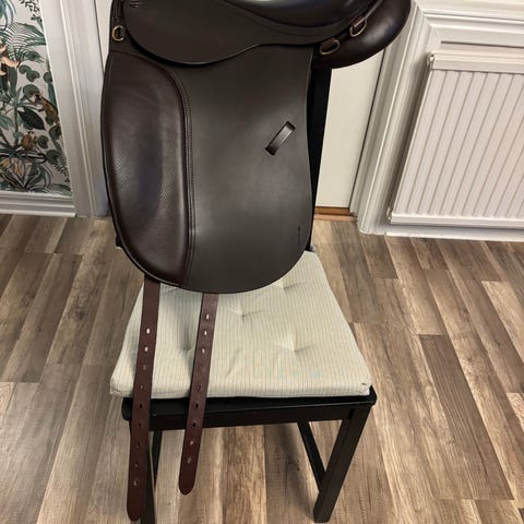 Butet hoppsadel från 2007. Använd men väl underhållen. Modell L- mediumdjupt säte. Kåpstorlek 2, 17 tum
