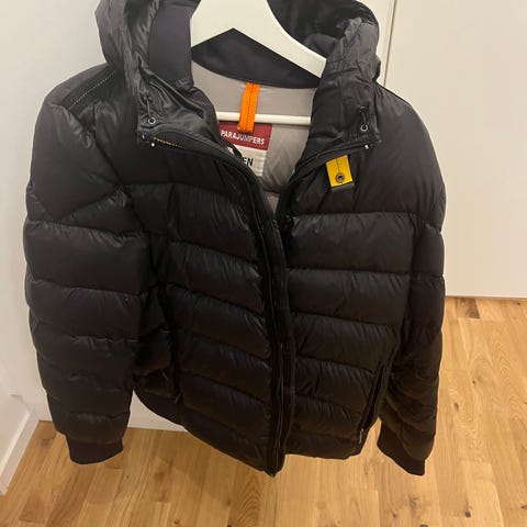 Parajumpers jacka i storlek L för herrar. Jackan är grön och tillverkad av dun, vilket ger isolering och värme. Passar för utomhusbruk och har en luva för extra skydd.