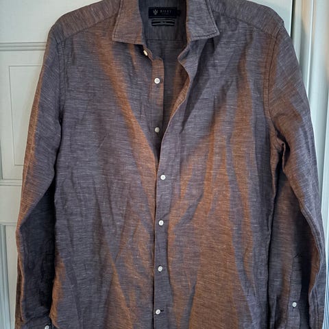 Blå ursnygg populär och trendig Riley linne skjorta i storlek M. Superfint skick då den är använd mycket sparsamt och perfekt till alla möjliga tillfällen! Inga defekter, pris ej hugget i sten och tveka inte vid minsta fråga eller fundering!