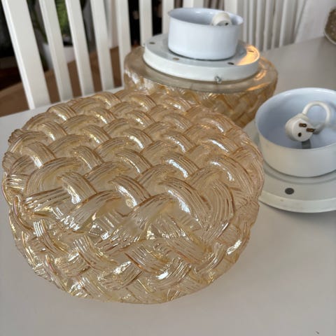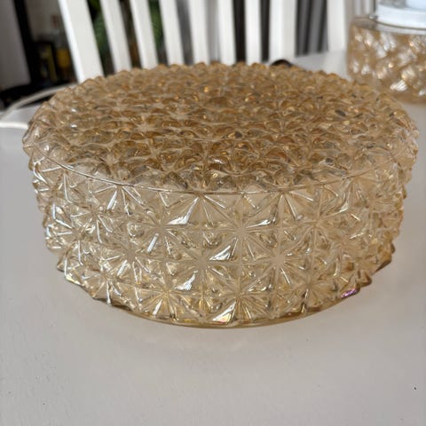 4 st likadana taklampor/plafonder med bärnstensfärgat glas, retro 70-tal.