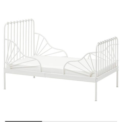 IKEA juniorsäng i vit färg. Passar för barn och är utformad för att ge en anpassad sovplats för yngre barn.