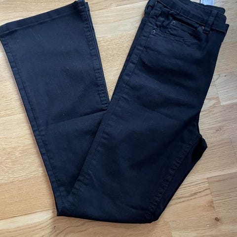 Gina Tricot Perfect Jeans är grå "ultra low bootcut jeans"i storlek 42 med midjemått W40, tillverkade i bomull med 2% elastan, designen är anpassad för kvinnor och erbjuder en klassisk passform.