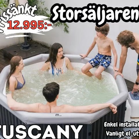 Fullt fungerande med värme och bubblor. Topplock samt isolermatta och div kem tillbehör och håv medföljer. Enkel att installera då den kopplas in och fyller luft automatiskt med ett knapptryck.
