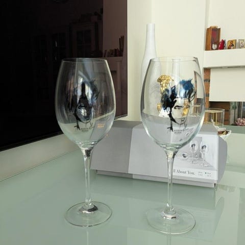 Kosta Boda All About You vinglas i 2-pack. Glasen har motiv av ansikten i svart och lila färg. Tillverkade i glas och avsedda för vin.