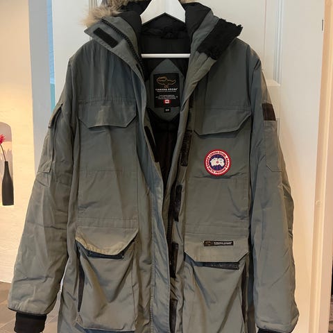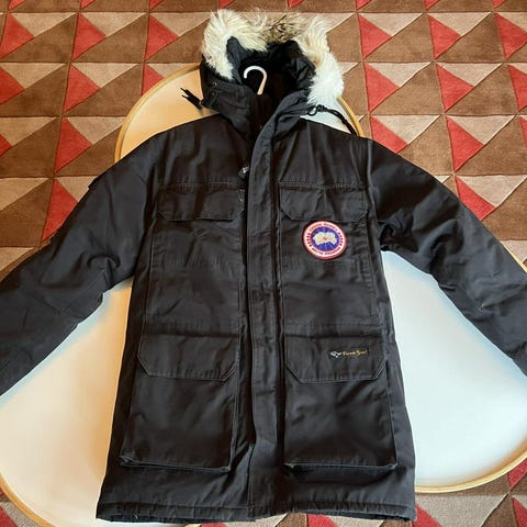Canada Goose Expedition. Klassisk och snygg vinterjacka i storlek XS, svart färg. En mycket varm och omtyckt jacka som nu är för liten. Den ser på det hela taget bra ut men har några mindre fel som syns om man tittar närmare. Alla dessa fel syns på bilderna och beskrivs här: