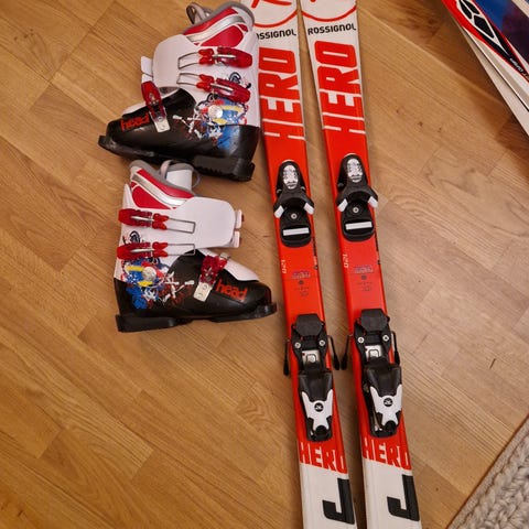 Rossignol slalomskidor för barn 120 cm. Fina belag i använt skick. Ingår stavar 95 cm av märket everest.