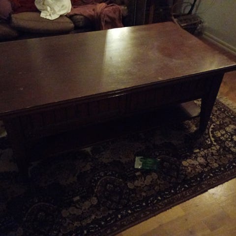 Ett stilrent mindre soffbord, sideboard av ett gammalt trägolv. Det är behandlat med olja.