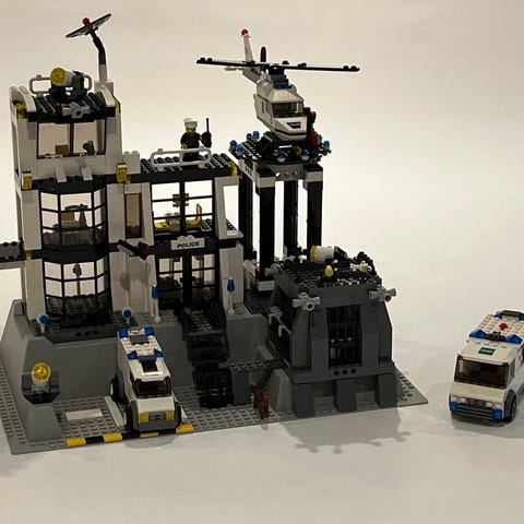 Flera olika byggen i större paket. I stort finns alla bitar med några undantag. - Lastbilen saknar en dator och ett klistermärke inne i lastutrymmet. - en av poliserna i dubbletterna i polisbil är inte helt rätt. - en av tjuvarna saknar 2 röda diamanter ( har 2 blå). - Guldgruvan saknar sin skylt och 2 orangea bitar vid ingången. - En av instruktionerna saknar framsida och några är lite medtsgna, men inga sidor fattas. Samtliga byggen är paketerade enskilt med rätt instruktion.