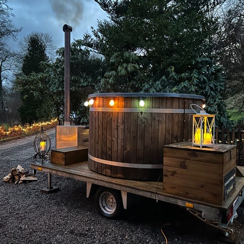 Fixa stämningen! En badtunna med plats för hela gänget. Njut av ett härligt bad i en rymlig badtunna som står monterad på släp, enkel att transportera i upp till 30 km/h bakom bilen. • Vedeldad kamin – värmer upp vattnet till 38–40°C på ca 3–3,5 timmar, oavsett årstid • Plastinsats – lätt att rengöra och alltid hygienisk • Plats för 6–8 personer – perfekt för både mysiga kvällar och festliga tillfällen Pris: • 900 kr/dygn • 1500 kr/helg Annat pris gäller för storhelger. Hämtas strax utanför Falköping.