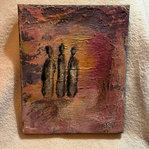 abstrakt konst tavla föreställande en grupp av figurer i olika färger.