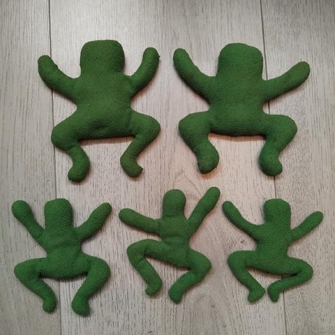 Stickade djur ca 30-33 cm långa. Stora grisen är 23 cm hög och 33 cm lång