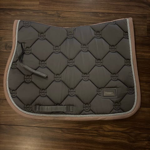 Equiline Schabrak i beige färg med quiltad design. Tillverkad i material som ger en mjuk och bekväm passform. Passar för ridning och hästutrustning.