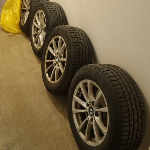 Säljer ett komplett set med BMW originalfälgar och Bridgestone vinterdäck 205/55 R16 M+S