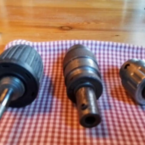 Helt nya samt gamla borrhuvuden.