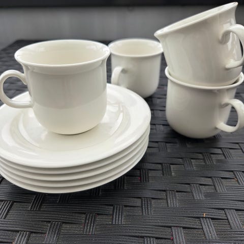 Arabia Arctic 6 Kaffekoppar och fat i vitt porslin