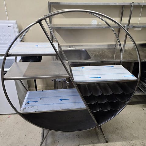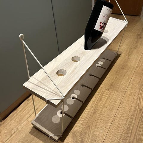 Vacker hylla i svart metall som är ett blickfång med inbyggd ljus och plats för glas, vin och deklaration enligt önskemål . Köpt på amazon dec 2023. Säljes pga flytt till hus där denna tyvärr inte passar in. Ny pris 2790,säljer för 1500.