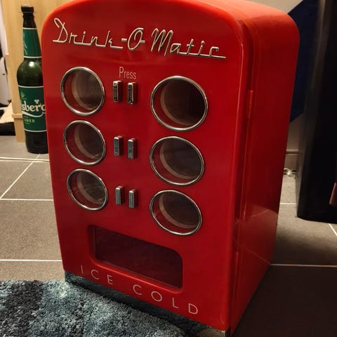 Minikylskåp, kan även värma. Höjd 46cm 28 cm i diameter. Passar i barnrummet, gäststugan, bastun, bilen mm. Har både vanlig elkontakt samt till cigarettuttag i bil.