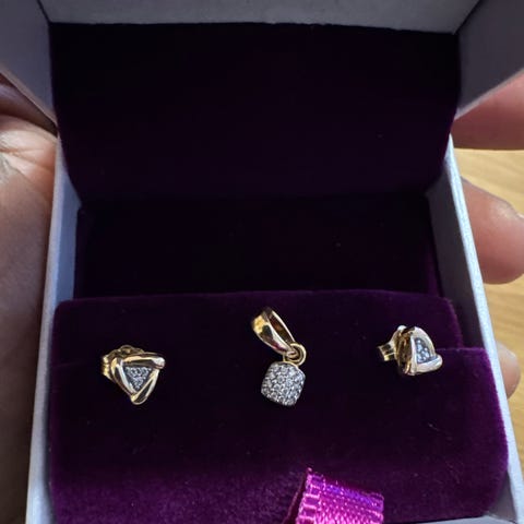 Örhängena är i mycket fint skick och köpt via Kaplan i Stockholm hösten 2025. Mittstenarna är citriner och sidostenarna är äkta naturliga diamanter.