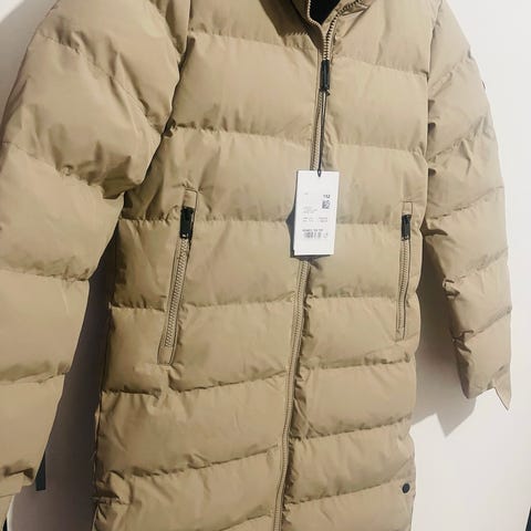 Everest jacka i svart färg, tillverkad av dunmaterial. Damstorlek 34. Lång modell med huva.