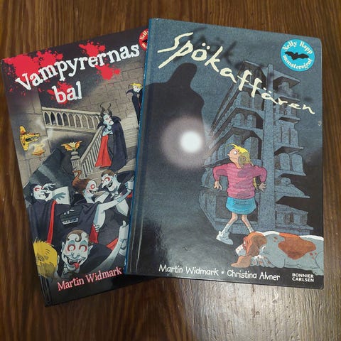 Två barnböcker från serien Nelly Rapp.