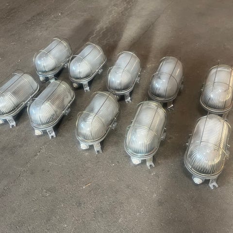 LED inbyggnadsspotlight med vit ram. Använda i ca 10 år. 4 st Schneider dimmer ingår.
