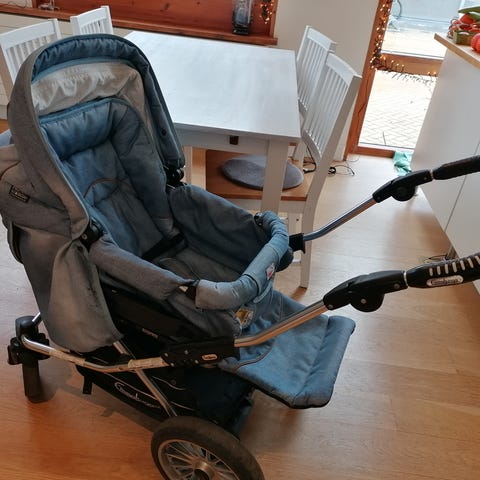 Saknar endast en svart knopp på fästet till fotsack (funktionsmässigt obetydligt)