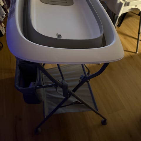 Badkar från Twistshake med stativ. Badkaret och babyinsatsen är i använt, sparsamt skick och finns därmed såklart tecken på användning men väldigt fint! Stativet är i nyskick och är inköpt i februari i år.