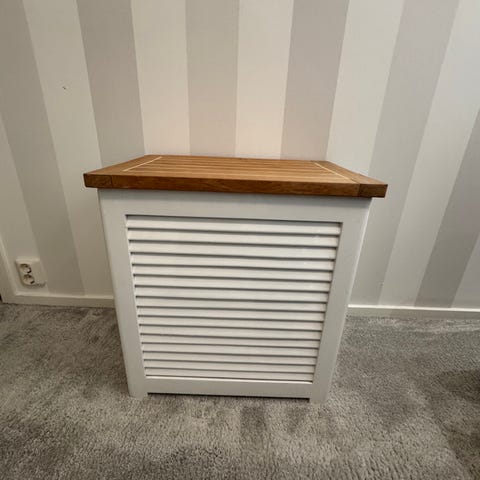 Helt ny tvättkorg i silver. Tyvärr hann vi kasta kartongen innan vi insåg att vi köpt en korg förmycket.