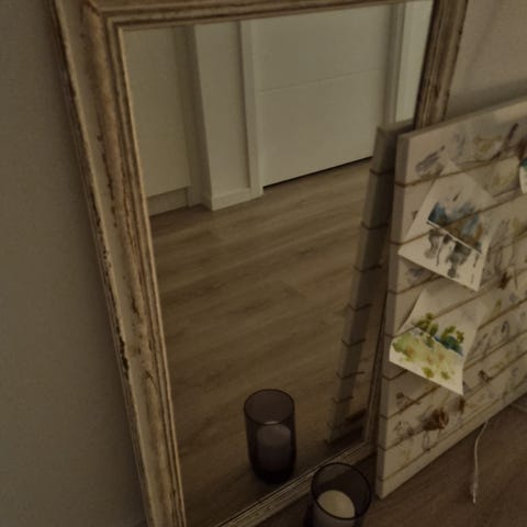 Fin spegel i retro form, kan användas på golv eller alternativt hängas på vägg. 162 x 72. Hämtas på plats.