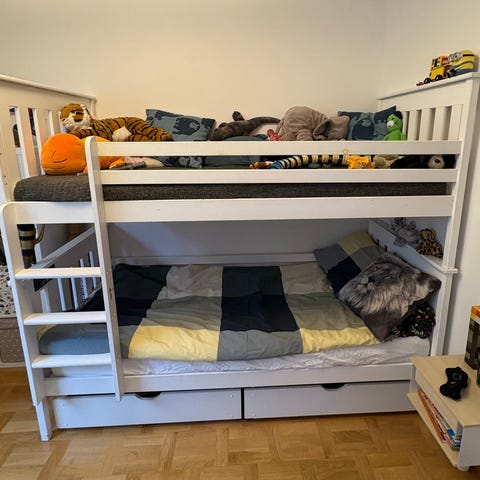 Madrasser och bäddmadrasser ingår, 80x200cm.