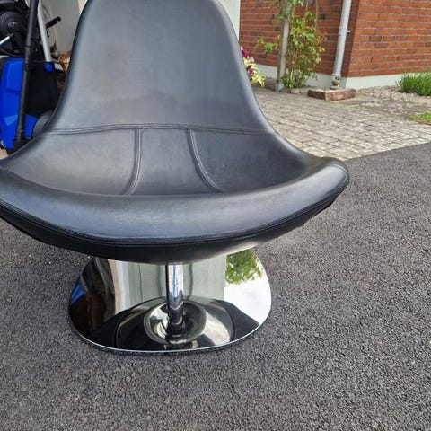 Skinnfåtölj från 70-talet med snurr och gungfunktion.