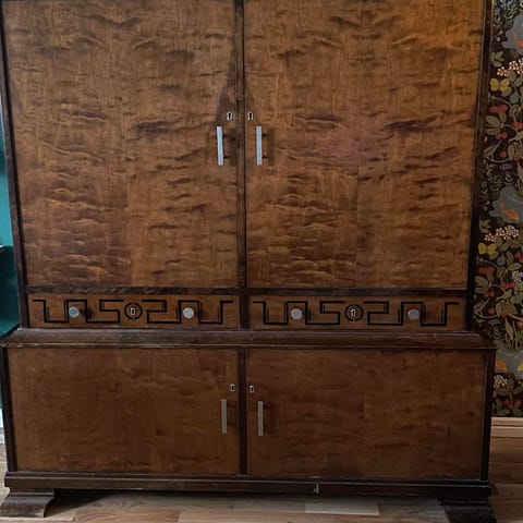 Köksö i trä och järn, tre lådor och stor förvaring skåp, 900kr