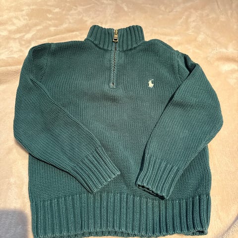 Ralph Lauren Polo tröja i blå färg, tillverkad i bomull. Passar pojkar i storlek 104. Tröjan har en halv dragkedja vid halsen och är designad för barn.